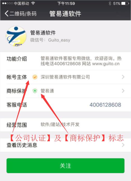使用《管易通云报表升级版》首先需要您关注“管易通软件”微信公众号。